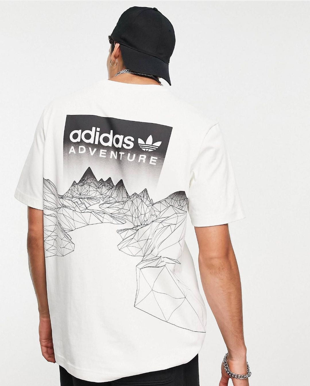 Introducing the ADIDAS ORIGINALS ADVENTURE BACK PRINT MOUNTAIN TSHIRT IN WHITE. This stylish and comfortable t-shirt features a unique mountain print on the back, perfect for any adventure seeker. Made with high-quality materials, it provides both durability and style. Upgrade your wardrobe with this must-have for any outdoor enthusiast.