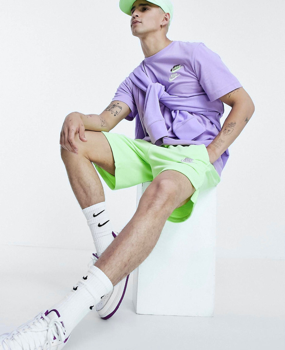 Introducing the NIKE MULTI LOGO TSHIRT, a stylish and comfortable addition to your wardrobe. Made of high-quality material, this shirt features a unique and eye-catching purple color with multiple logos. Its soft and lightweight fabric will keep you cool and comfortable throughout the day, making it a perfect choice for any activity. Upgrade your style with the NIKE MULTI LOGO TSHIRT.