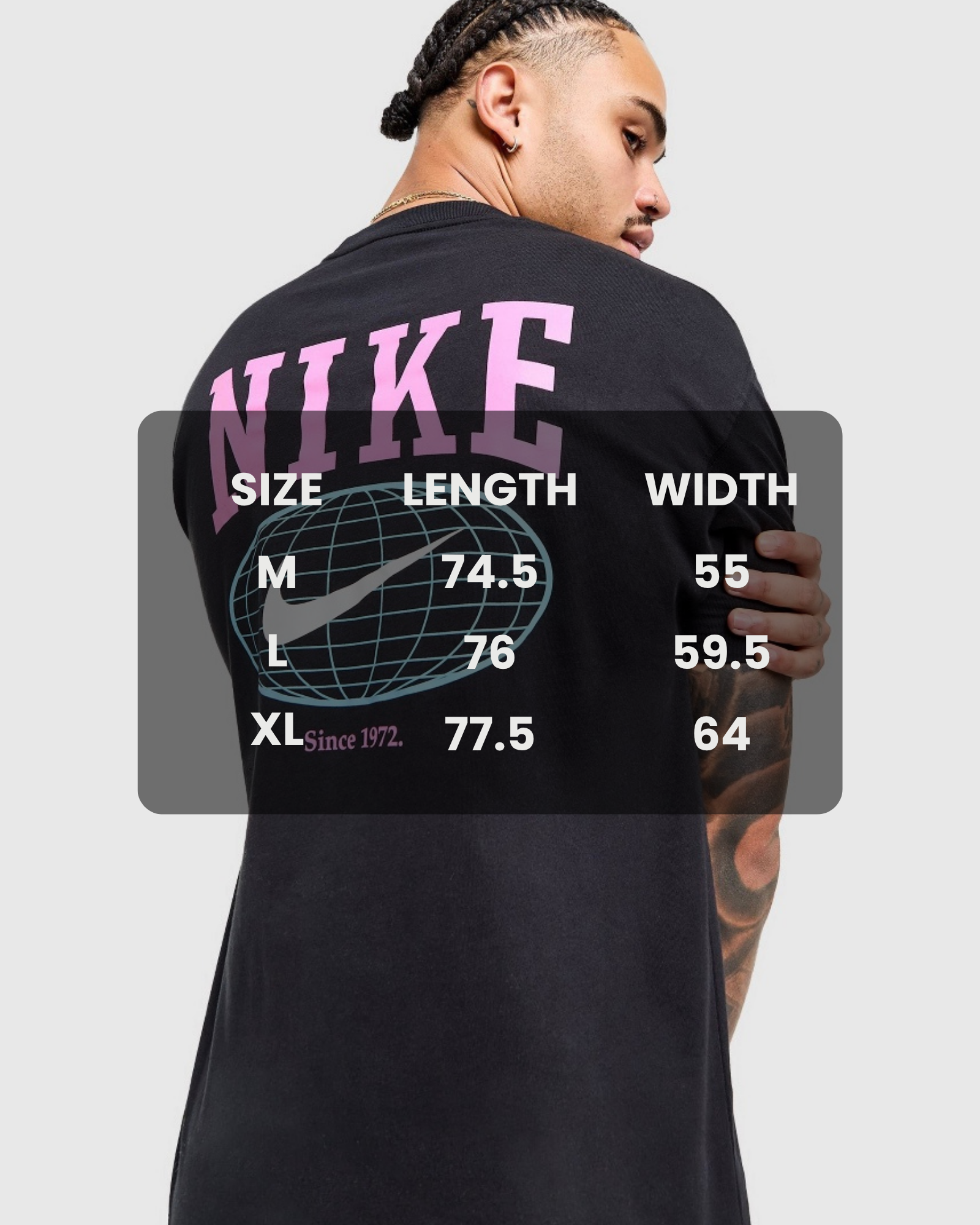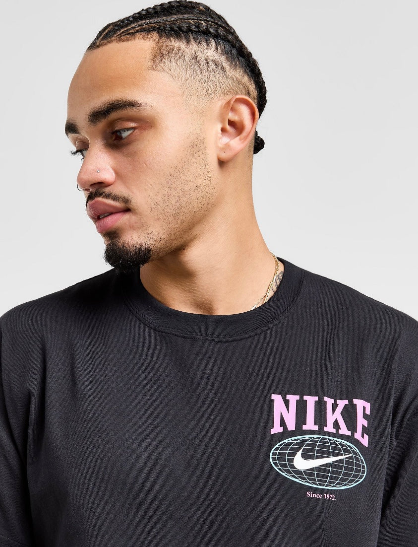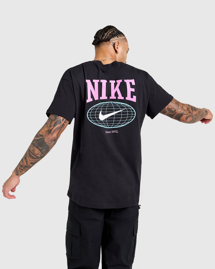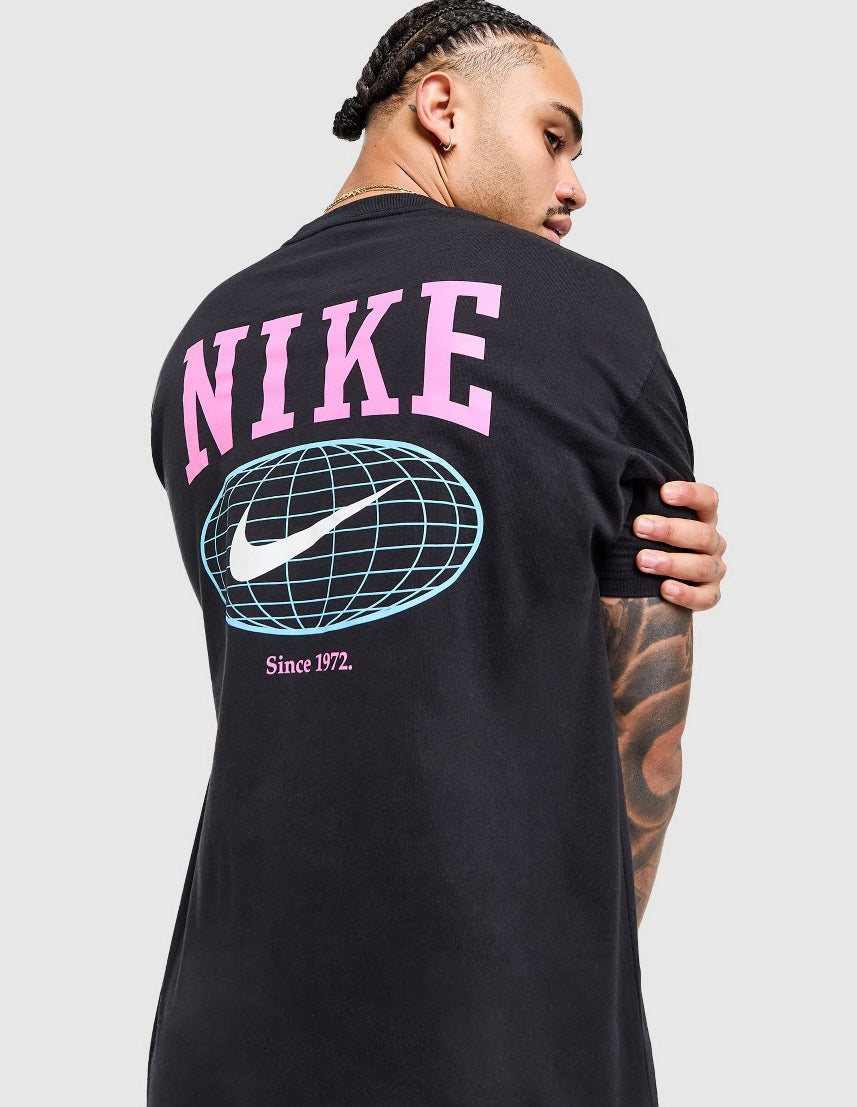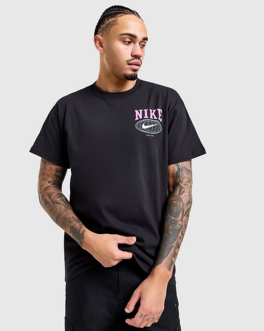This black Nike Globe T-Shirt features the iconic Swoosh logo and a globe graphic on the front. Made with soft, lightweight cotton, it provides all-day comfort and breathability. Perfect for athletes and casual wearers alike, this classic t-shirt showcases your love for both Nike and the planet.