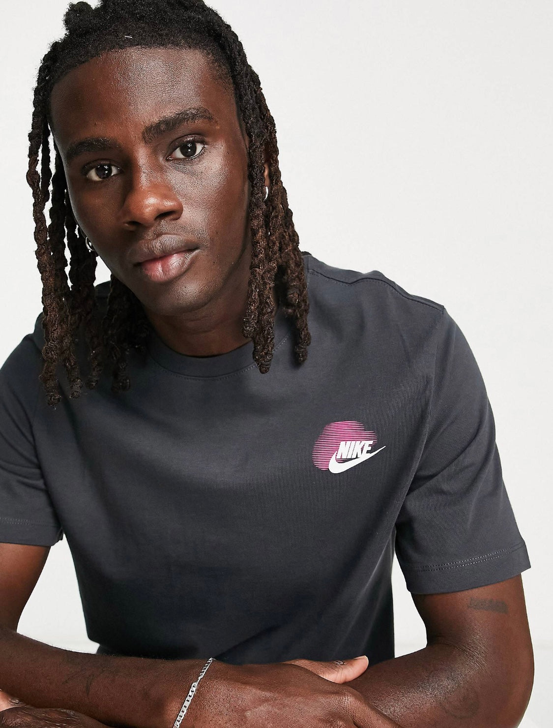 This Nike t-shirt features a double logo design in a sleek smoke grey color. Made with high-quality materials, it offers both style and comfort for your everyday wear. Stand out from the crowd with this trendy and iconic shirt.